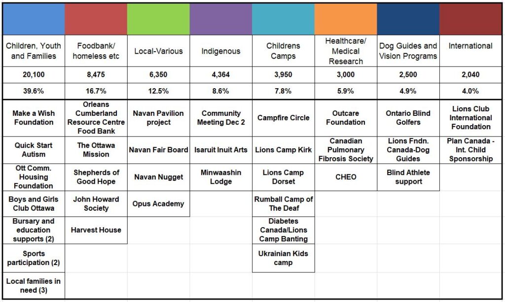 Navan Lions donated a total of $50,779 during our 2024 to 2025 year.